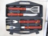 BBQ-04M-14 a set including a fork, a brush ,a knife and a spatular carton measure:45.5x22x62/10sets net weight:10kgs griosse weight:11kgs material can be 2CR13 and #430